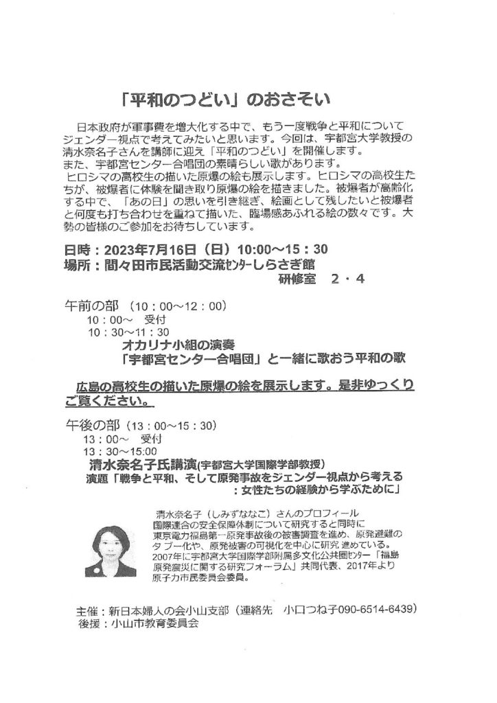 日頃より、小山市市民活動センターをご利用いただき、誠にありが …