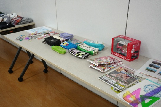 お譲り品の中には、洋服だけではなく、シャーペンや筆箱、キーホルダーなどの小物もありました。