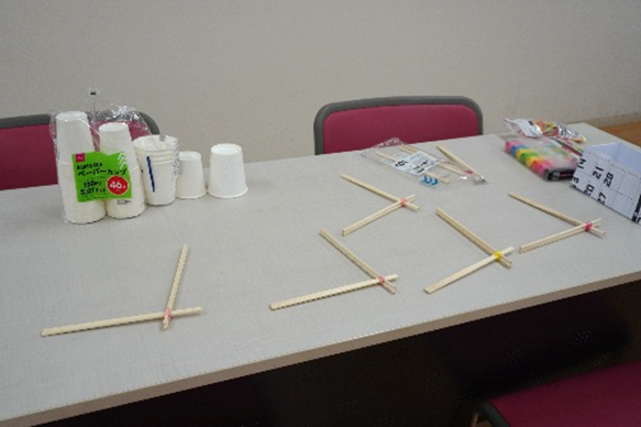 小学生は、お菓子がもらえることを楽しみに、一生懸命勉強を進めていました。勉強が終わった後は、割り箸鉄砲を作るのに少し苦戦しながらも、楽しく工作していました!