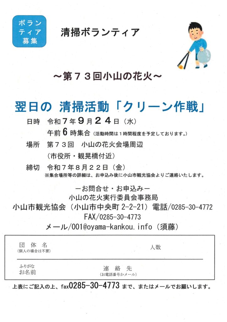 締め切り:8/22(金)※集合場所等の詳細は、お申し込み後に小山市観光協会よりご連絡します。