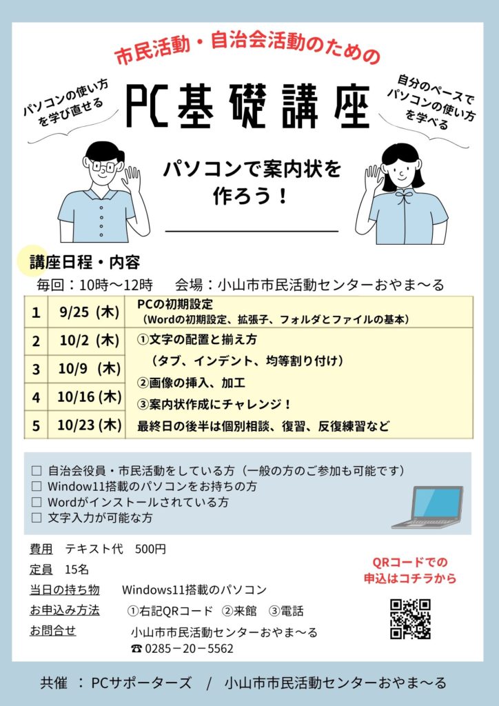 主催:PCサポーターズ・小山市市民活動センターおやま~る