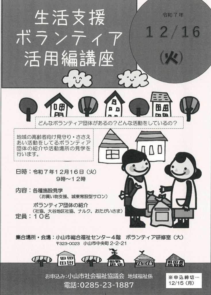 問い合せ:小山市社会福祉協議会 地域福祉係 電話0285-23-1887
