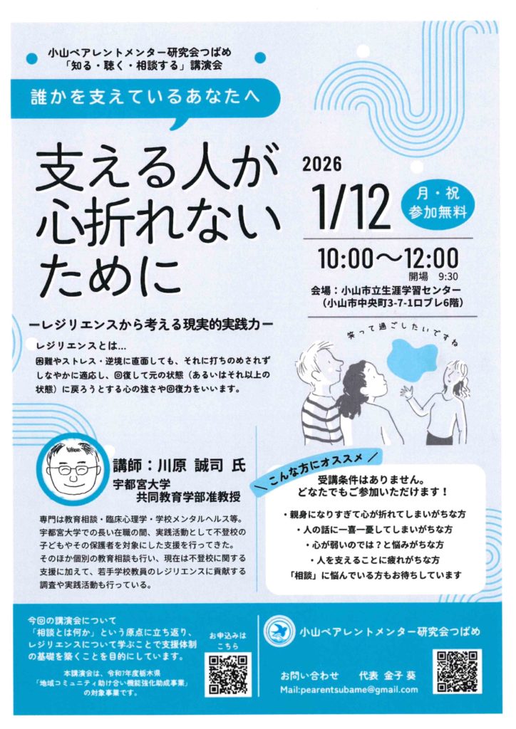 講演名:小山ペアレントメンター研究会つばめ「知る・聴く・相談する」講演会