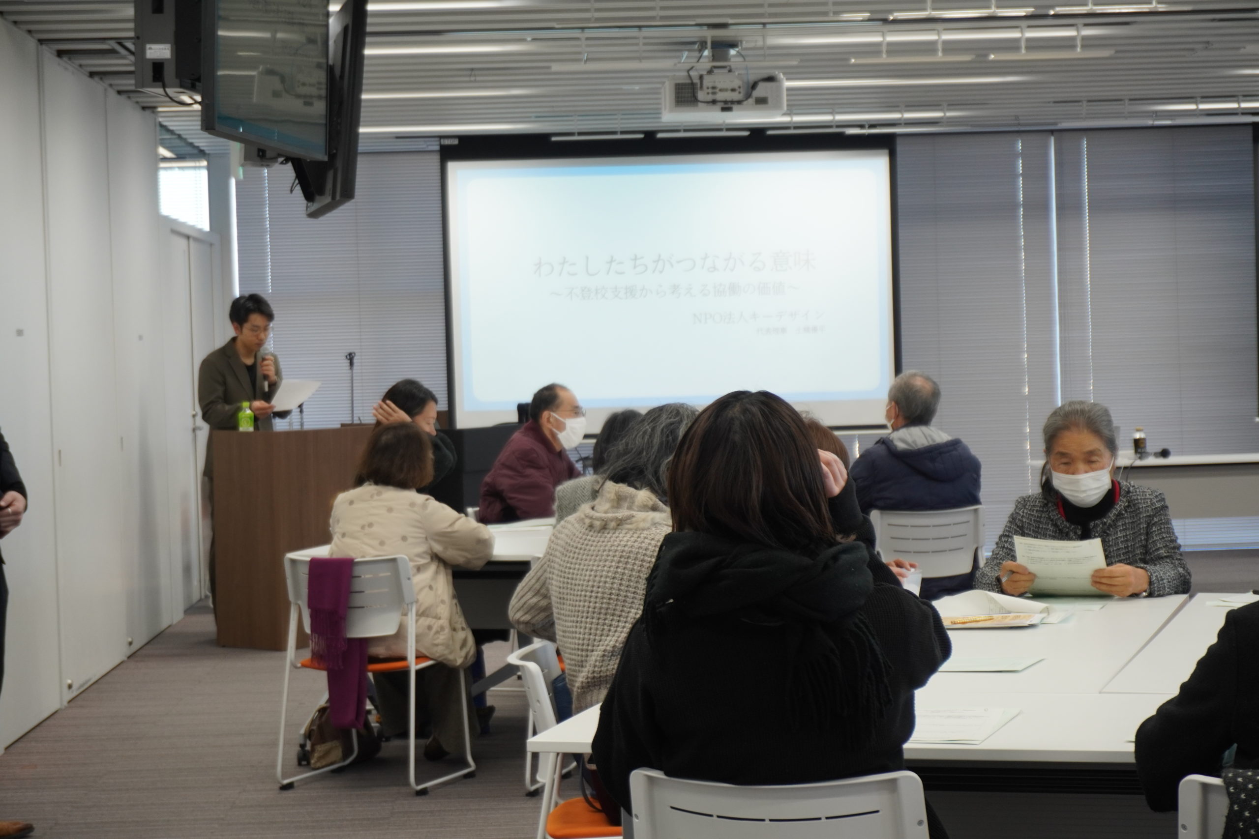 前半はNPO法人キーデザインの土橋さんから、「協働」をテーマに活動の想いや取り組みについてご講演いただきました。