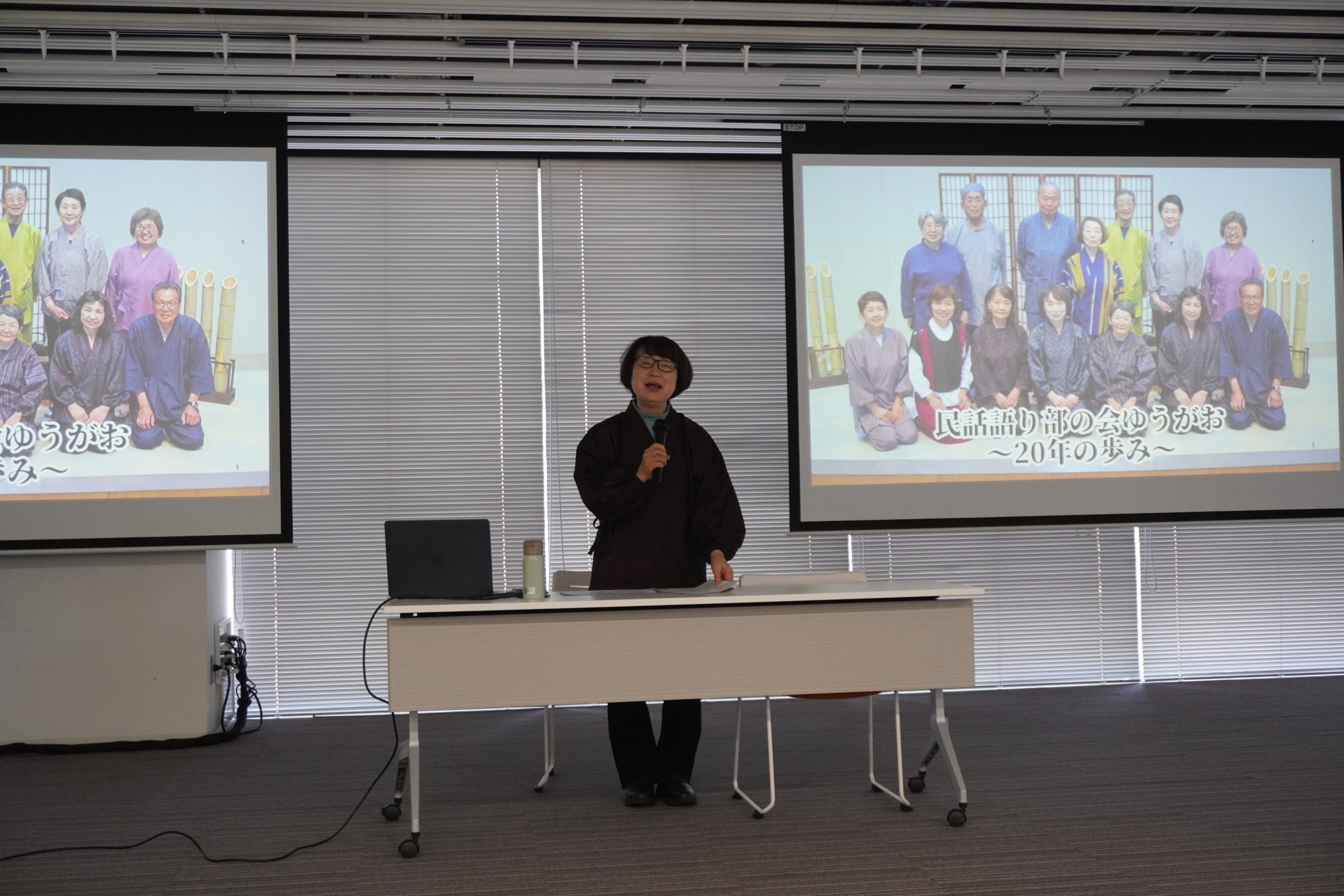 まずは、代表の黒須さんによる民話「ほれ薬」の語りから始まり、会場の空気が語りの世界に引き込まれました。