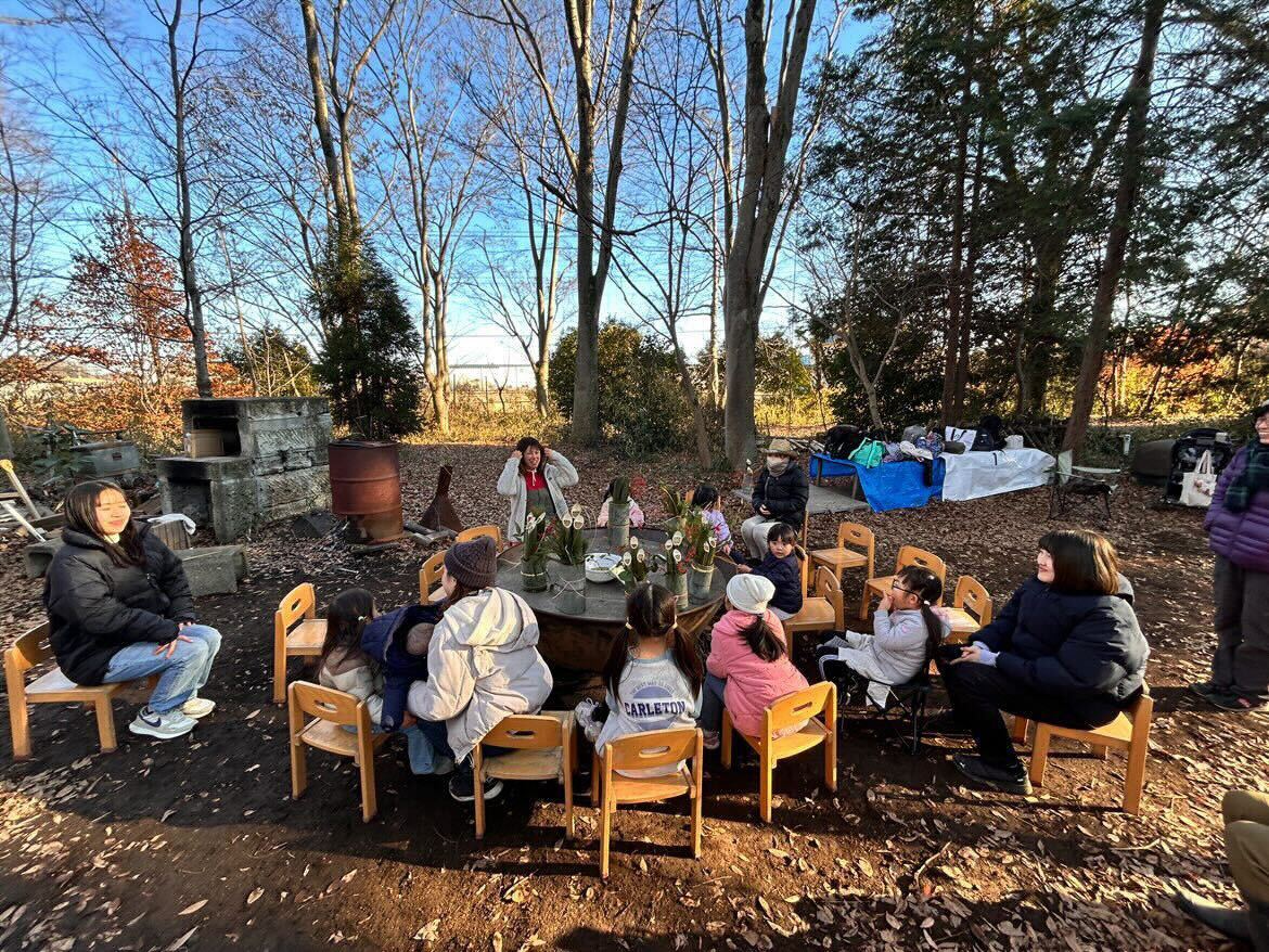 2025 年に活動を開始し、代表の中村さんを中心に 8 人の運営メンバーがいます。中村さんは、子どもたちが楽しそうに過ごす姿を見た時、活動を始めてよかったと感じています。普段あまり自然に触れることのない子どもたちが、森の中でのびのびと遊ぶ様子は、活動の大きなやりがいです。森にある竹や草花などの資源を活用し、竹のコップやお皿づくり、おみこしや門松づくり、薪割り体験などを通して、五感を刺激し、豊かな感性と自然を愛する心を育んでいます。