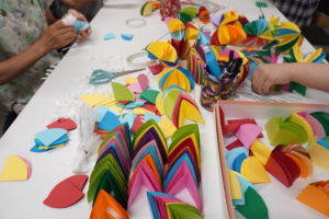 また、みんなで手作り傘を作って交流しました。今回もカラフルな傘が沢山できました!