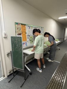 外ではお弁当配布の受付をして、お弁当を取りに来る子どもたちに声をかけて名簿に記入したり、アイスやジュースを渡したりしました。