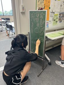 椅子やテーブルを並べて、看板をホワイトボードに書いて、オレンジカフェの出迎える場をつくりました。