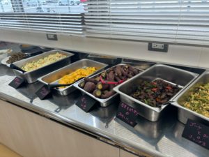野菜は寄付でいただいているものを使い、ボランティアの人たちがその場で考える栄養満点の料理ばかりです。