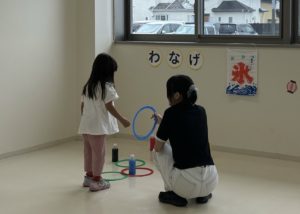 縁日コーナーでは、おもちゃすくい、輪投げ、キックボーリング、手裏剣などの手作りブースにそれぞれが担当になってサポートしました。