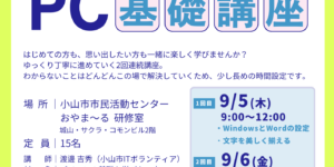 【9/5、9/6参加者募集】~パソコン設定からはじめる~PC基礎講座
