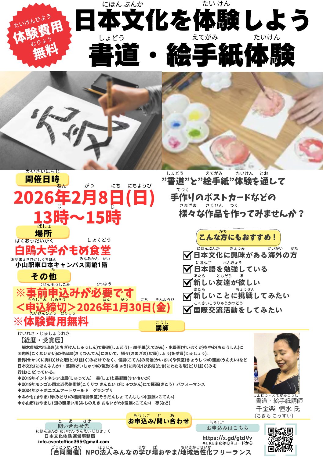 【2/8(日)】日本文化を体験しよう書道・絵手紙体験